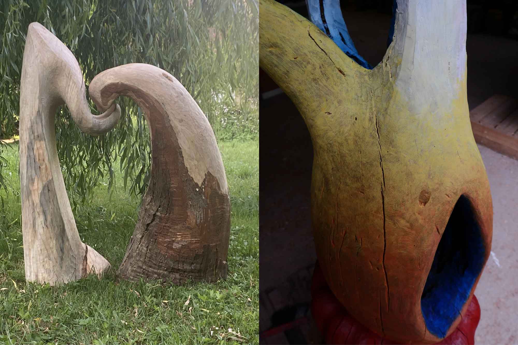 Jusqu’à une douloureuse rupture de GAEC, suite à laquelle je me suis lentement dirigée vers la sculpture. Après mon diplôme de sculptrice à la Edith Maryon Kunstschule (Freiburg im Breisgau) en 2022, je souhaitais exercer mon art dans une ferme collective.